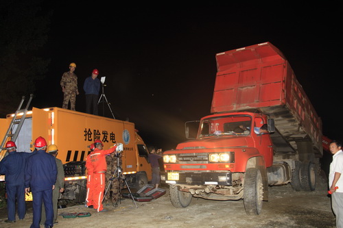 24日下午,為確保道路搶修恢復(fù)工作的不間斷進(jìn)行,三門峽供電公司駐盧氏搶險救災(zāi)一線指揮部,一是派盧氏局一名副局長帶領(lǐng)發(fā)電車,提前到達(dá)現(xiàn)場,二是帶足發(fā)電車油料,確保發(fā)電機(jī)組一整夜不停機(jī)。按照一線指揮部的要求,下午6時,120千瓦應(yīng)急發(fā)電車準(zhǔn)時到位,工作人員提前在現(xiàn)場施工最近處和應(yīng)急發(fā)電車頂部架起三組應(yīng)急照明燈。8時,天剛一黑,車上的發(fā)電機(jī)組就開始發(fā)電,三組2000瓦的照明燈把道路搶修現(xiàn)場照得一片通明。