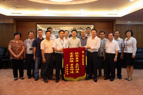 10月11日,茂名供電局黨委書記顏揚一行專程趕來贈送錦旗,感謝我局救災(zāi)復(fù)電搶險隊的大力支持。9月中下旬,連日的暴雨給茂名多個鄉(xiāng)鎮(zhèn)造成險情。9月24日,接到省公司的命令后,我局派出了600多人的搶修隊伍趕赴災(zāi)情最重的高州。經(jīng)過連續(xù)4個晝夜的奮戰(zhàn),順利完成了25公里10千伏線路的搶修任務(wù),為最短時間恢復(fù)電力供應(yīng)做出了貢獻(xiàn)。