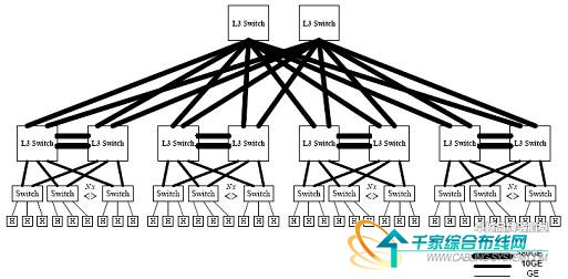 核心交換機采用100G,匯聚采用10G交換,底層采用1000M