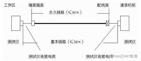 基本鏈路是指布線工程中固定鏈路部分,包括最長的90m水平電纜和在兩端分別接有一個連接點。信道測試連接方式,用來測試端到端的鏈路,包括用戶終端連接線在內的整體信道性能。