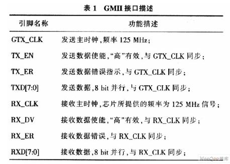 1)GMII接口 88E1111與MAC層之間的數(shù)據(jù)接口見表1。