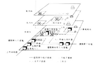 設(shè)備間子系統(tǒng)由設(shè)備間內(nèi)安裝的電纜、連接器和有關(guān)的支撐硬件組成,如圖1-6所示。它的作用是把公共系統(tǒng)設(shè)備的各種不同設(shè)備互連起來(lái),如電信部門(mén)的中繼線和公共系統(tǒng)設(shè)備(如PBX)互連起來(lái)。為便于設(shè)備搬運(yùn),節(jié)省投資,設(shè)備間的位置最好選定在建筑物的第二層或第三層。設(shè)備間還包括建筑物的入口區(qū)的設(shè)備或電氣保護(hù)裝置及其連接到符合要求的建筑物接地點(diǎn)。