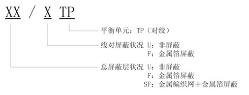 目前的屏蔽雙絞線中,主要有超5類(5e)屏蔽雙絞線,6類屏蔽雙絞線,超6類(6A)屏蔽雙絞線,7類屏蔽雙絞線以及7A類屏蔽雙絞線。在這些屏蔽雙絞線中,它們各自的屏蔽方式也有不同。在國家標準(GB 50311-2007)中規(guī)定了屏蔽電纜類型的表示方法,具體如下: