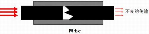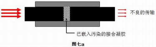 故障定位:d. 預(yù)置打磨光纖與切割光纖接續(xù)縫隙過大(圖七d)
