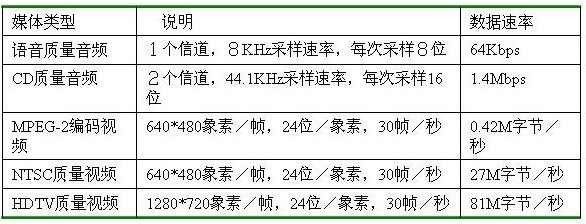 我們好好看看網絡通信標準,不難看出很多標準的推出是為了解決某種應用而誕生的,比如說10G/40G/100G的網絡推出,主要是解決數據中心和網絡主干的應用,所以超六類和七類布線產品也是針對這些網絡需求應用而生的,所以不要盲目的把它們應用在其它領域,更不要過早地應用在水平布線系統(tǒng)中,因為到現在為止,我們的桌面應用實際沒有我們想象的那樣高。多媒體技術廣泛用于在線直播、視頻點播、遠程教育、多媒體新聞發(fā)布、網絡廣告、電子商務、遠程醫(yī)療、網絡電臺、實時視頻會議等互聯網信息服務的方方面面,它的應用將為網絡信息交流帶來革命性的變化,對人們的工作和生活將產生深遠的影響,讓我們看看今天數字多媒體的應用對傳輸的要求有多大,見下表;