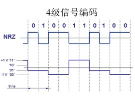 可見正常的方波電壓被壓縮調(diào)制成4個臺階分別對應(yīng)4個2位二進(jìn)制數(shù),這就造成了4級信號之間的峰值電壓差距不大,受干擾疊加后容易造成誤碼。再加上每條鏈路必須雙向全雙工傳輸信號,誤碼的可能更大大加強(qiáng)。所以為了能使網(wǎng)絡(luò)設(shè)備能正確地辨識每一個方波信號,在網(wǎng)絡(luò)設(shè)備中必須增加大量的串?dāng)_/回聲消除DSP處理器,這就造成了支持1000Base-T的交換機(jī)平均端口成本大大增加。如下圖所示: