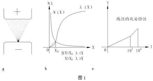 圖1b擴散型電弧金屬蒸汽密度分布圖。N為密度,λ為自由程,X為開距。
